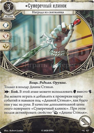 «Сумеречный клинок» — без преувеличения основная карта в колоде культистки (поэтому мы обязательно берём 2х Готовность к худшему, чтобы найти «Клинок» поскорее).