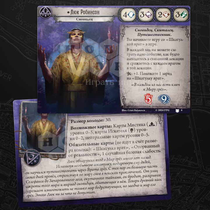получили сыщика, заточенного на поисках нужных карт в собственной колоде и кучу карт, так или иначе мотивирующих этим заниматься. Также рады будут любители книг.