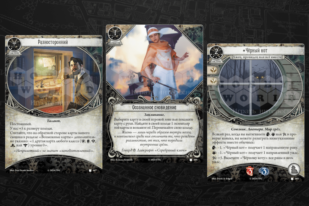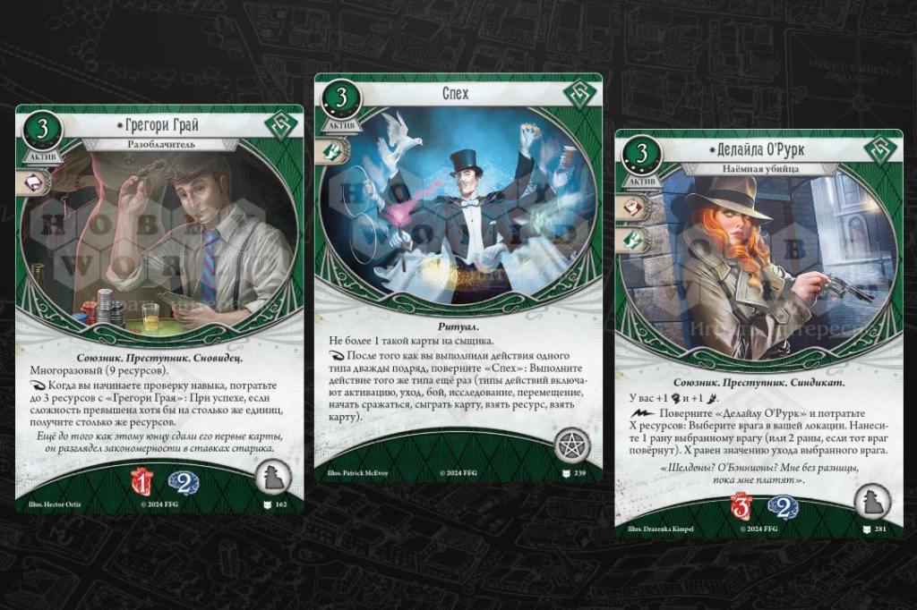 получили безумно уникальных и нетипичных сыщиков, поэтому их наборы карт сложнее подвести к какому-то единому знаменателю.
