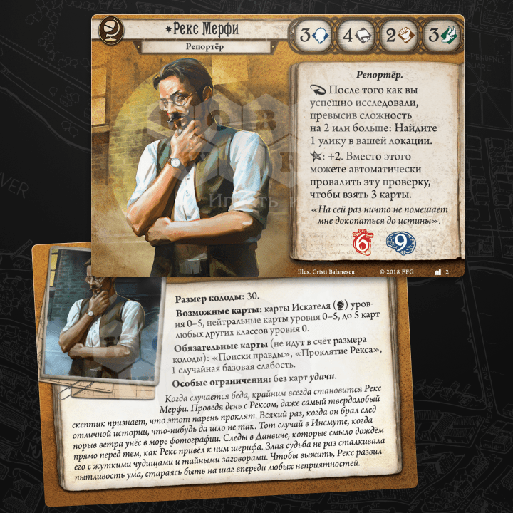 Ключевые дополнения для этой колоды — «Наследие Данвича. Сыщики» (иначе откуда у вас возьмётся Рекс) и «На краю земли. Сыщики» (в него входит большая часть основных игрушек).