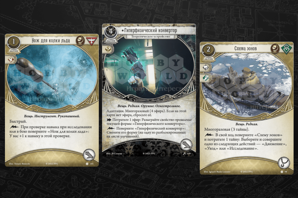 «Схема эонов» — ещё одна карта, которую искатель захочет использовать как можно активнее, ведь чем меньше действий мы тратим на перемещение, тем больше — на поиск улик.