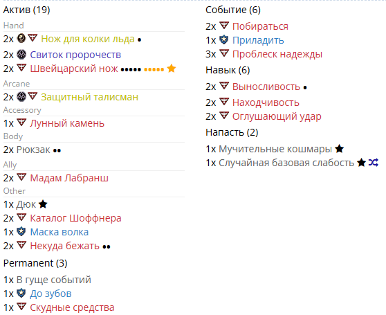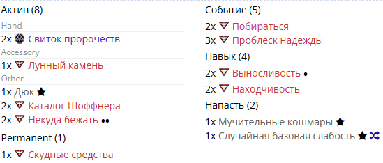 дешевле. Найдя же «Каталог Шоффнера» и «Рюкзаки» уровня 2, при должном везении можно выставить почти все вещи в колоде.