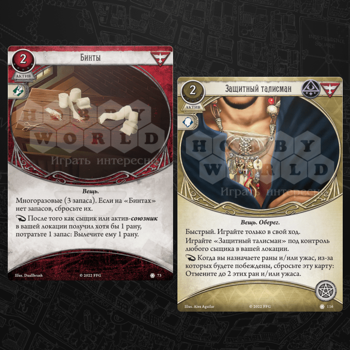 «Защитный талисман» — быстрая вещь, которая спасает нас от пары летальных ран/ужаса. Также может прикрыть другого сыщика!