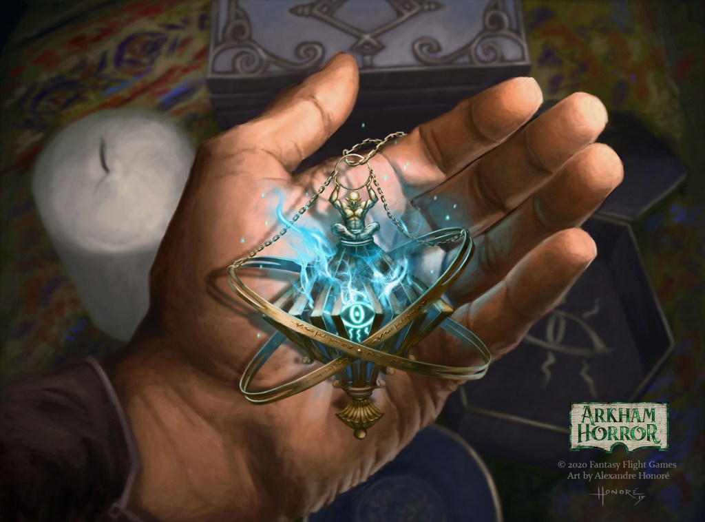 В японскую тему прямо шикарно легли «Родовой знак» и новая карточка из дополнения «Заговор в Инсмуте. Сыщики» Rite of Sanctification (ритуал освящения?)