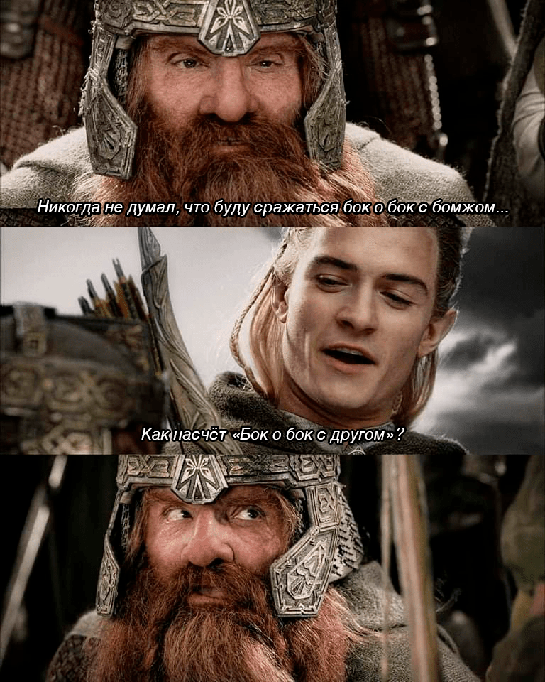 Пит, запомни, ты теперь не бомж, ты — Леголас. Вот лук. Видишь псину? Это твой друг, Гимли. Не спрашивай, почему с вами Голлум и какую бабку вы раздели, чтоб его нарядить.